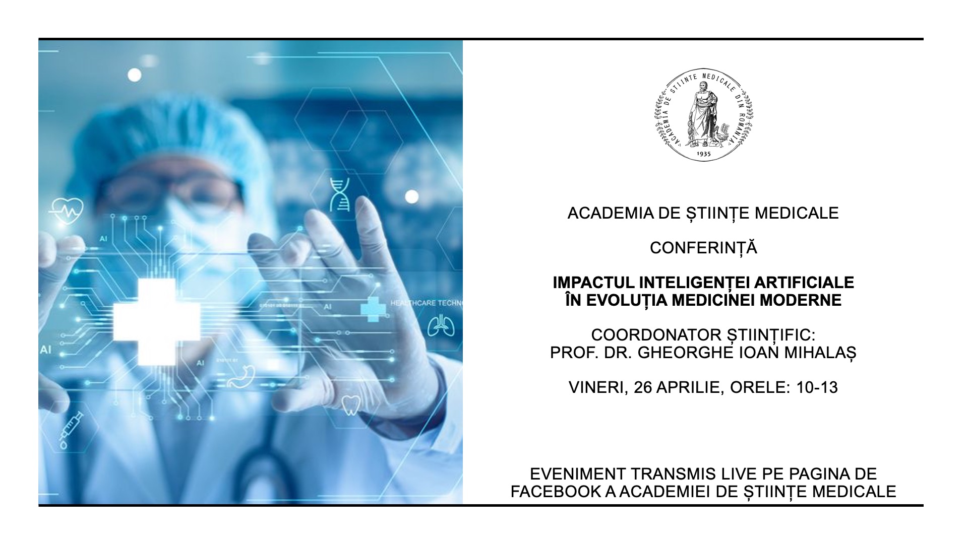 Academia de Științe Medicale organizează conferința cu tema “Impactul Inteligenței Artificiale în Evoluția Medicinei Moderne”. Coordonatorul științific al dezbaterii este Prof.dr. Gheorghe Ioan MIHALAȘ. Evenimentul va avea loc în data de 26 aprilie, începând cu ora 10, și va fi transmis live pe pagina de facebook a Academiei de Științe Medicale. În cazul în care […]