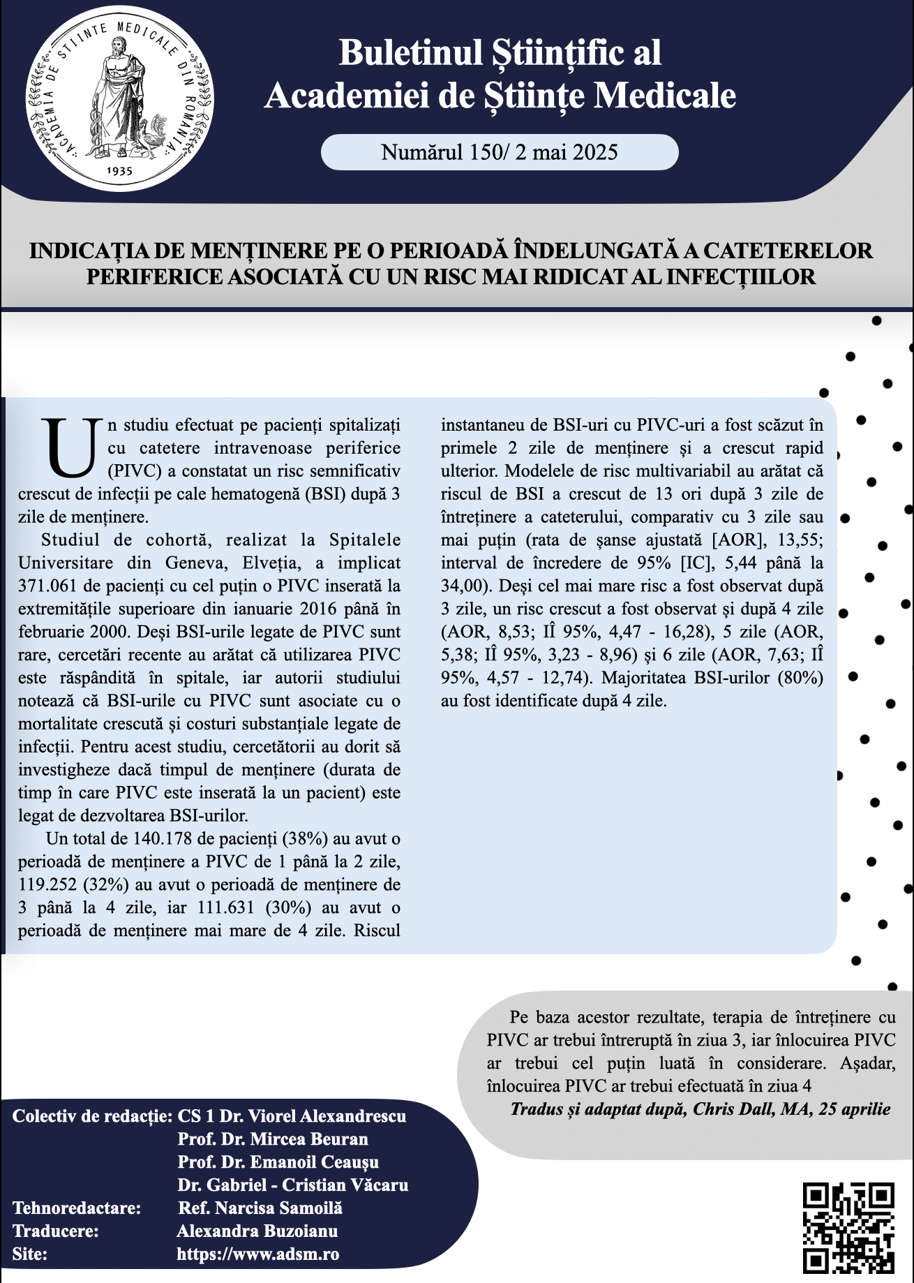Buletinul Științific al Academiei de Științe Medicale – Nr.150/ 2 mai 2025Posted on mai 2, 2025 Pentru a citi întregul buletin științific, click aici: Buletin stiintific nr.150
