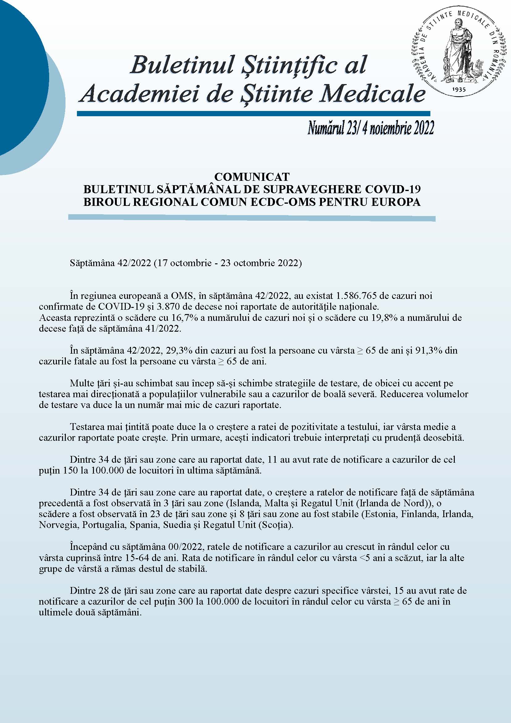 Buletinul Științific al Academiei de Științe Medicale – Nr.23/4 noiembrie 2022Posted on noiembrie 4, 2022 Pentru a citi întregul buletin științific, click aici: Buletin ASM nr 23 din 4.11.2022