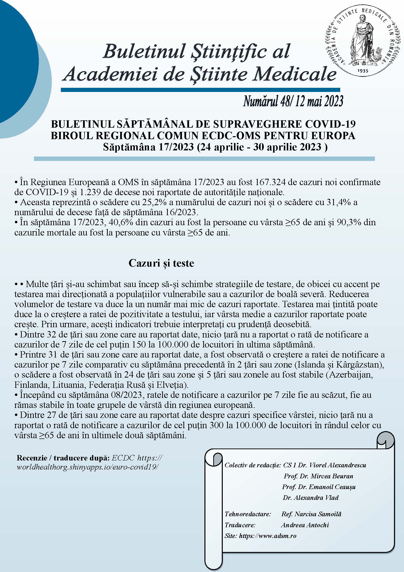 Buletinul Științific al Academiei de Științe Medicale – Nr.48/ 12 mai 2023