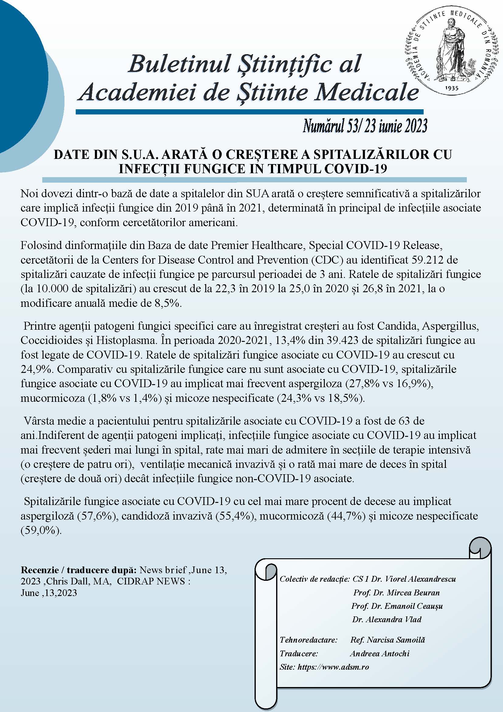 Buletinul Științific al Academiei de Științe Medicale – Nr.53/ 23 iunie 2023Posted on iunie 23, 2023 Pentru a citi întregul buletin științific, click aici: Buletin ASM nr 53 din 23 iunie 2023