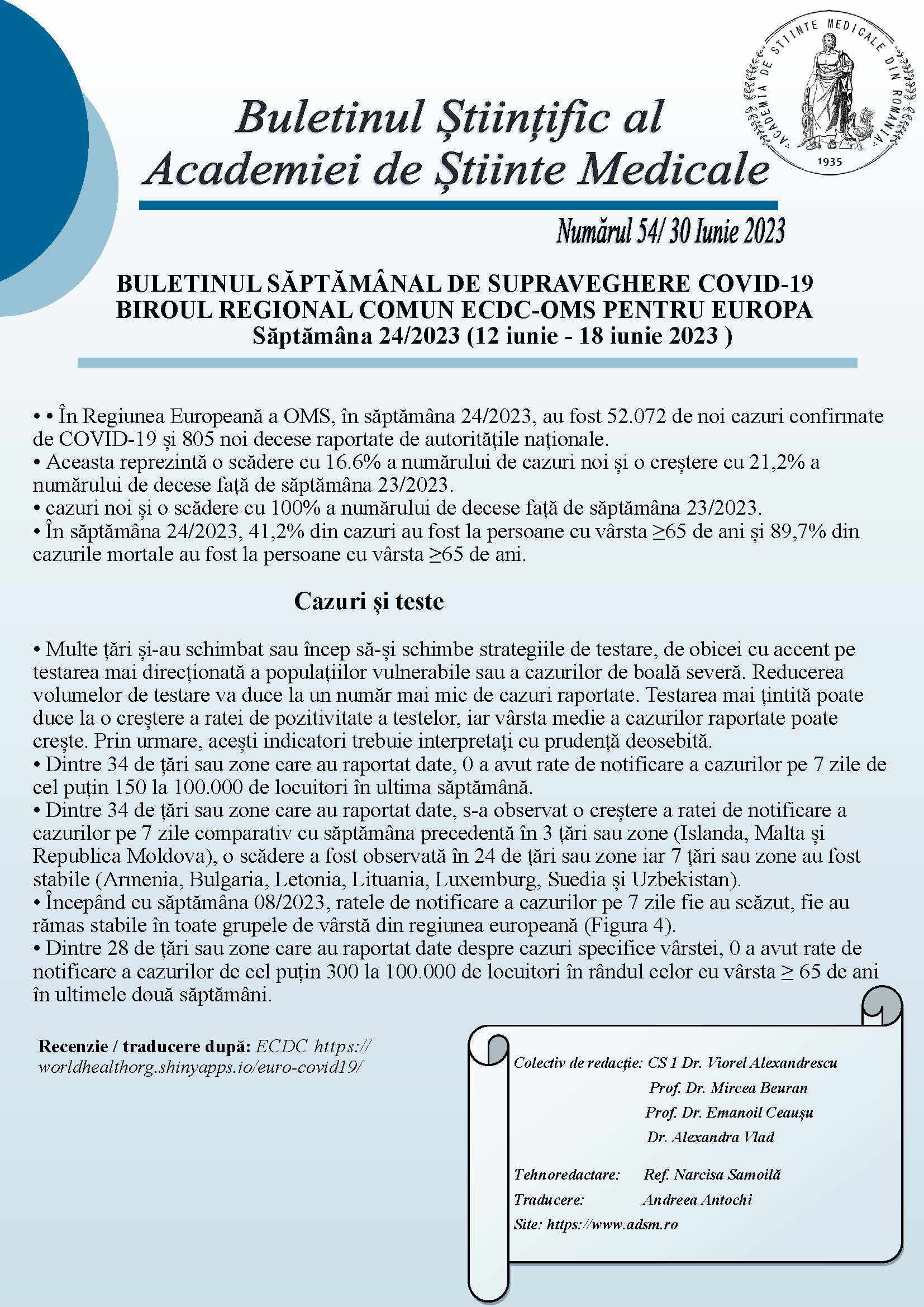 Buletinul Științific al Academiei de Științe Medicale – Nr.54/ 30 iunie 2023Posted on iunie 30, 2023 Pentru a citi întregul buletin științific, click aici: Buletin ASM nr 54 din 30 iunie 2023