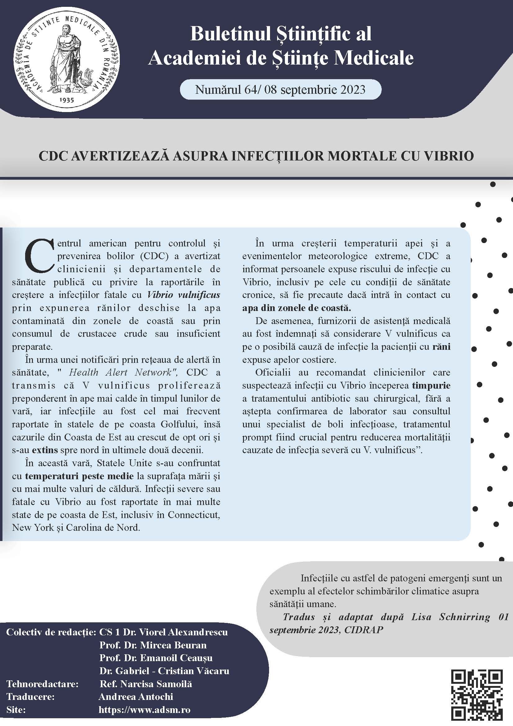 Buletinul Științific al Academiei de Științe Medicale – Nr.64/ 8 septembrie 2023Posted on septembrie 8, 2023 Pentru a citi întregul buletin științific, click aici: Buletin Stiintific nr. 64