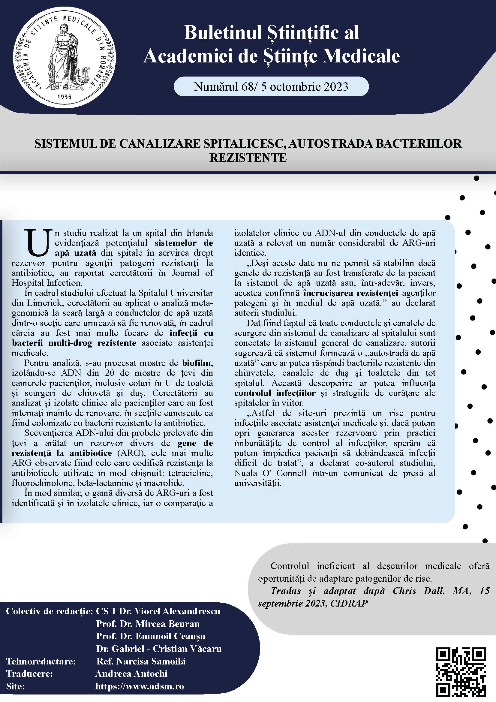 Buletinul Științific al Academiei de Științe Medicale – Nr.68/ 6 octombrie 2023Posted on octombrie 6, 2023 Pentru a citi întregul buletin științific, click aici: Buletin Stiintific nr. 68