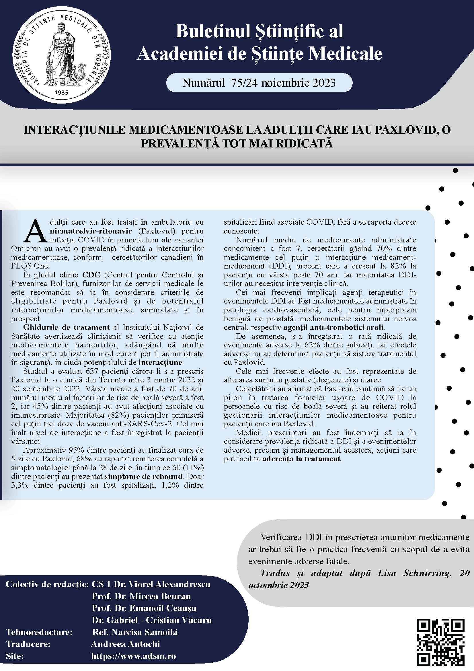 Buletinul Științific al Academiei de Științe Medicale – Nr.75/ 24 noiembrie 2023