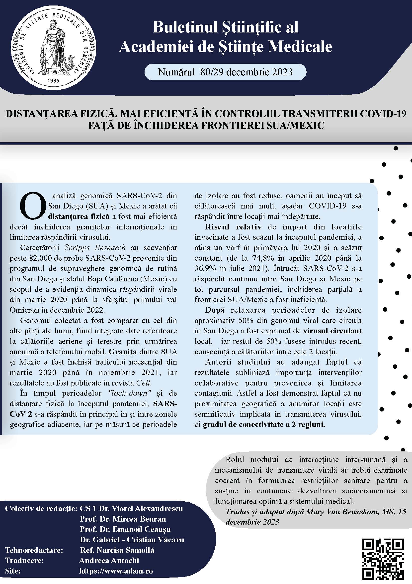 Buletinul Științific al Academiei de Științe Medicale – Nr.80/ 29 decembrie 2023
