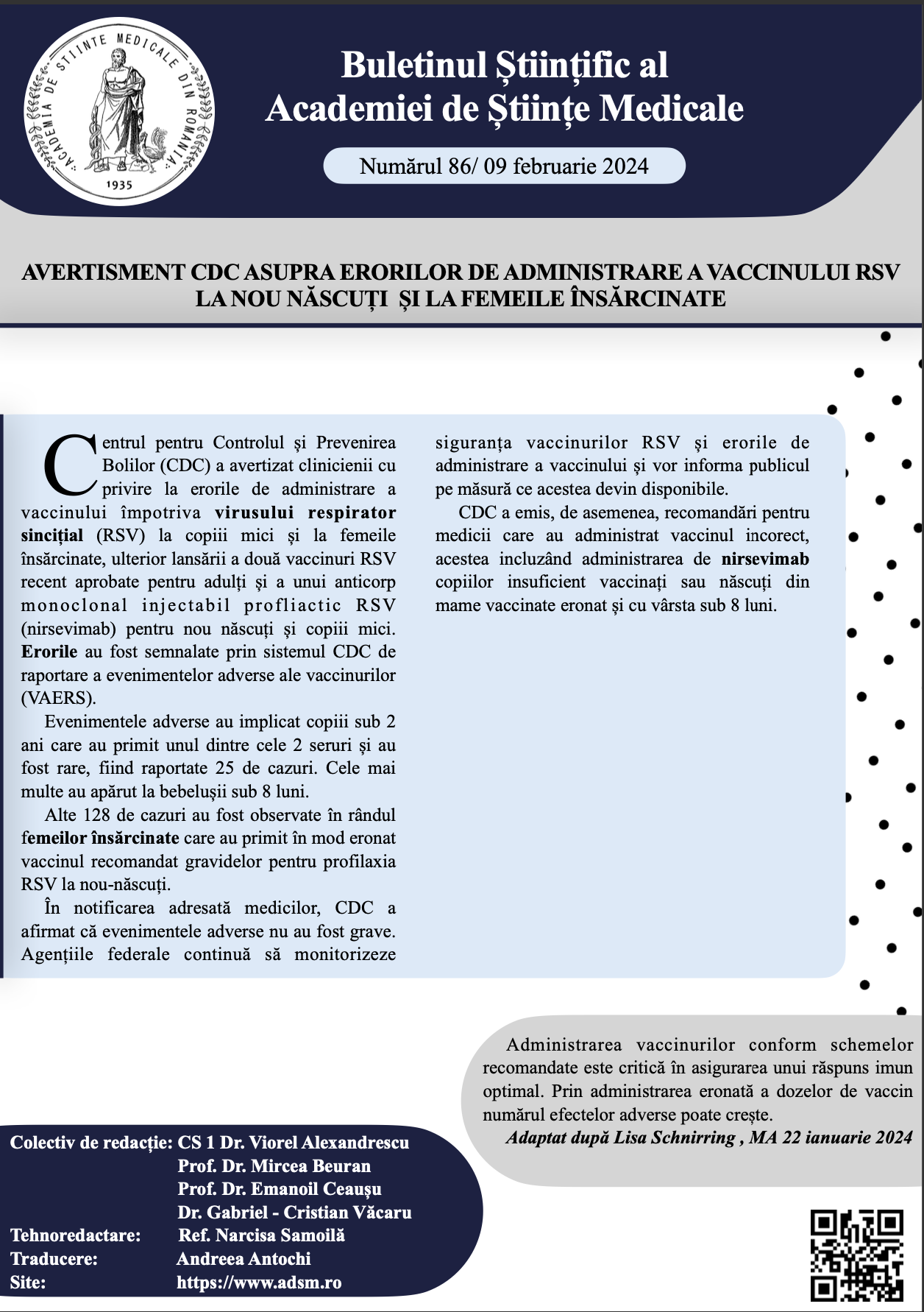 Buletinul Științific al Academiei de Științe Medicale – Nr.86/ 09 februarie 2024Posted on februarie 9, 2024 Pentru a citi întregul buletin științific, click aici: Buletin Stiintific nr. 86