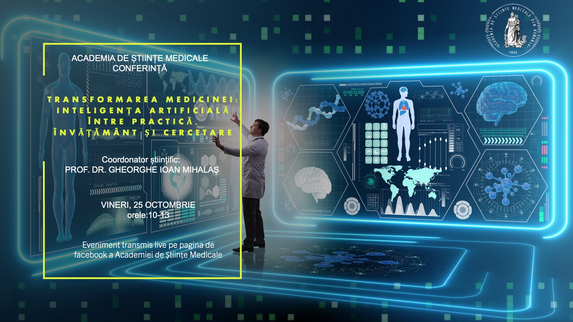 Academia de Științe Medicale organizează conferința cu tema “Transformarea Medicinei: Inteligența Artificială între practică, învățământ și cercetare.” Coordonatorul științific al dezbaterii este Prof. dr. Gheorghe Ioan MIHALAȘ, membru titular al Academiei de Științe Medicale. Evenimentul va avea loc în data de 25 octombrie, începând cu ora 10, și va fi transmis live pe pagina de […]