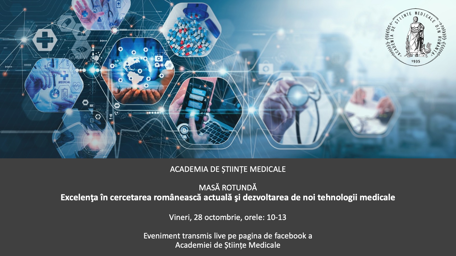 Evenimentul va avea loc în data de 28 octombrie, începând cu ora 10 și va fi transmis live pe pagina de facebook a Academiei de Științe Medicale.